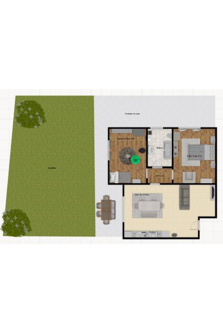 Dall'ingresso si accede alla zona giorno con cucina a vista, che vanta una generosa luminosità grazie ad ampia porta vetrata che accede sul giardino privato, ideale per trascorrere giornate con parenti ed amici.
