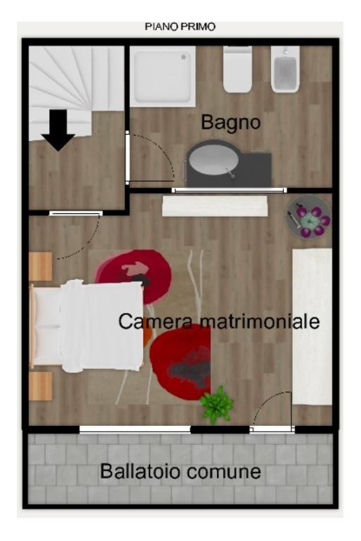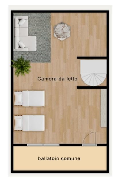 Piano mansardato: accessibile tramite scala a chiocciola oltre ad un ulteriore ingresso indipendente dal ballatoio comune tramite porta blindata, ideale come seconda camera, studio o zona hobby